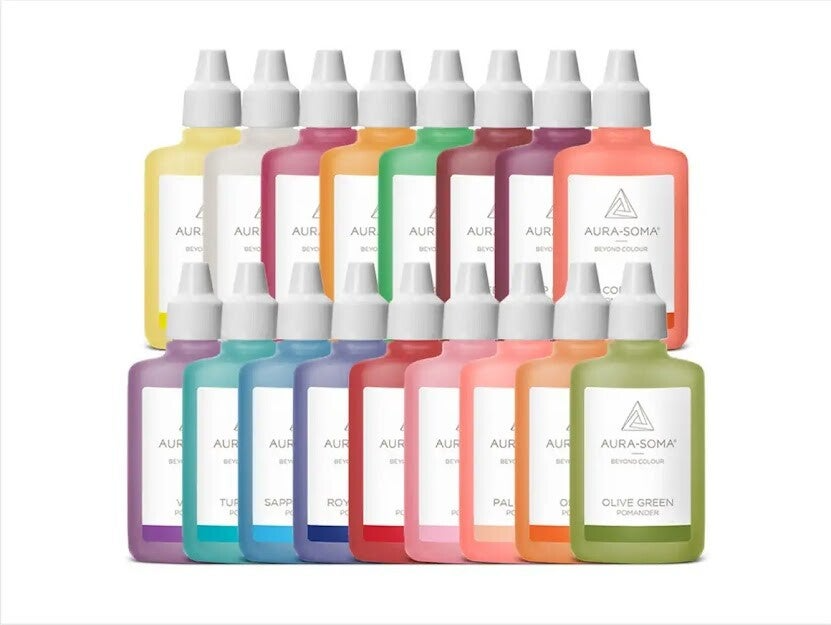 Die Pomander von Aura-Soma. Auf Alkohol Basis. Die Pomander Farben, werden in die Aura Eingefächert. Als Schutz!